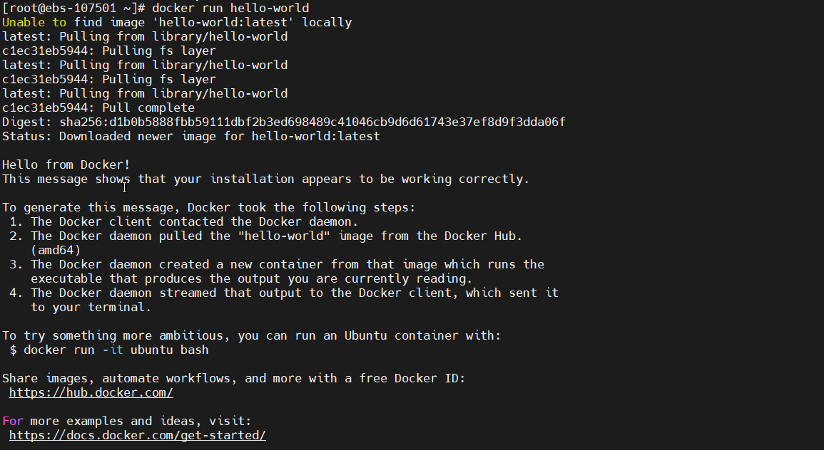最后可以运行一个 hello-world 进行测试: